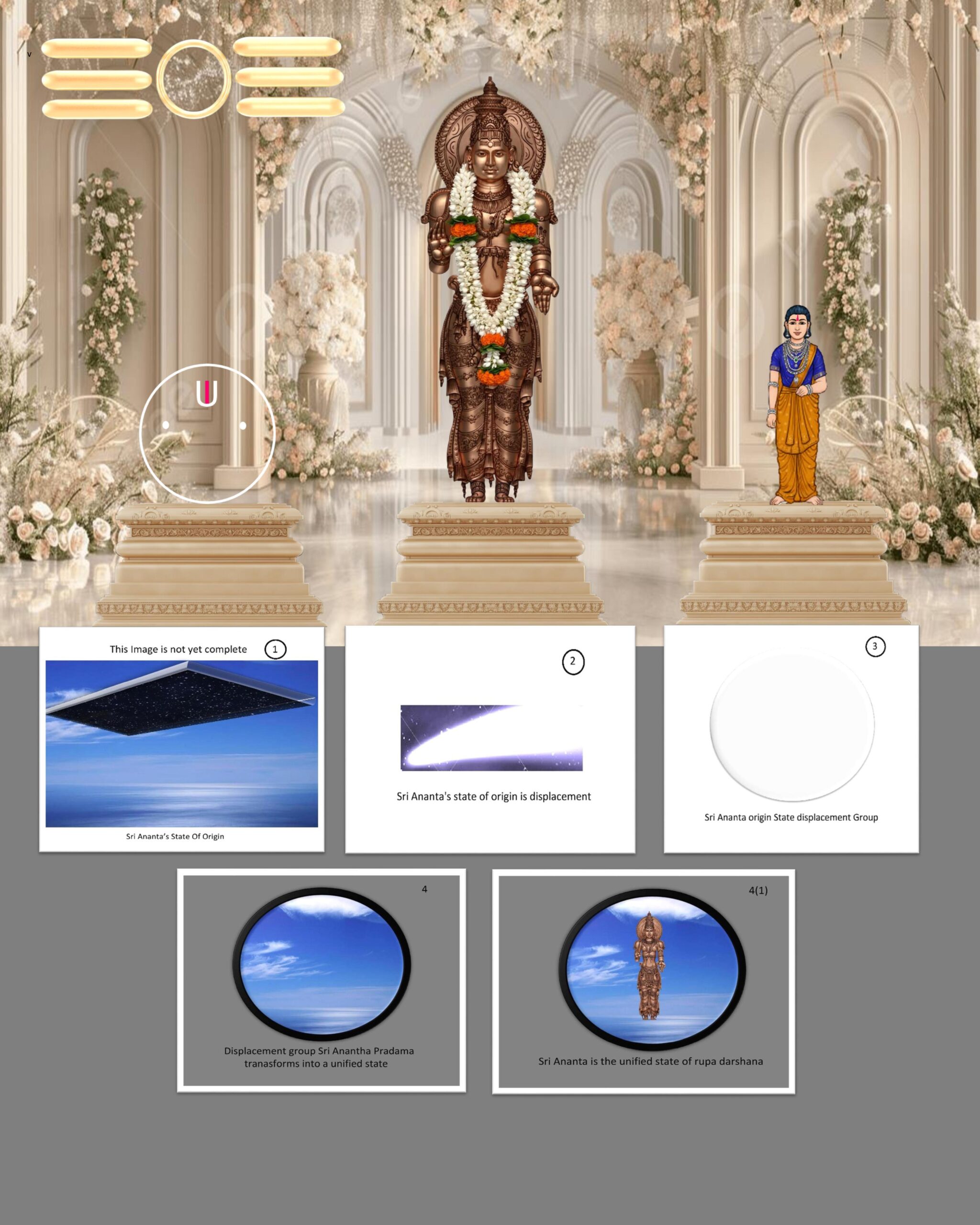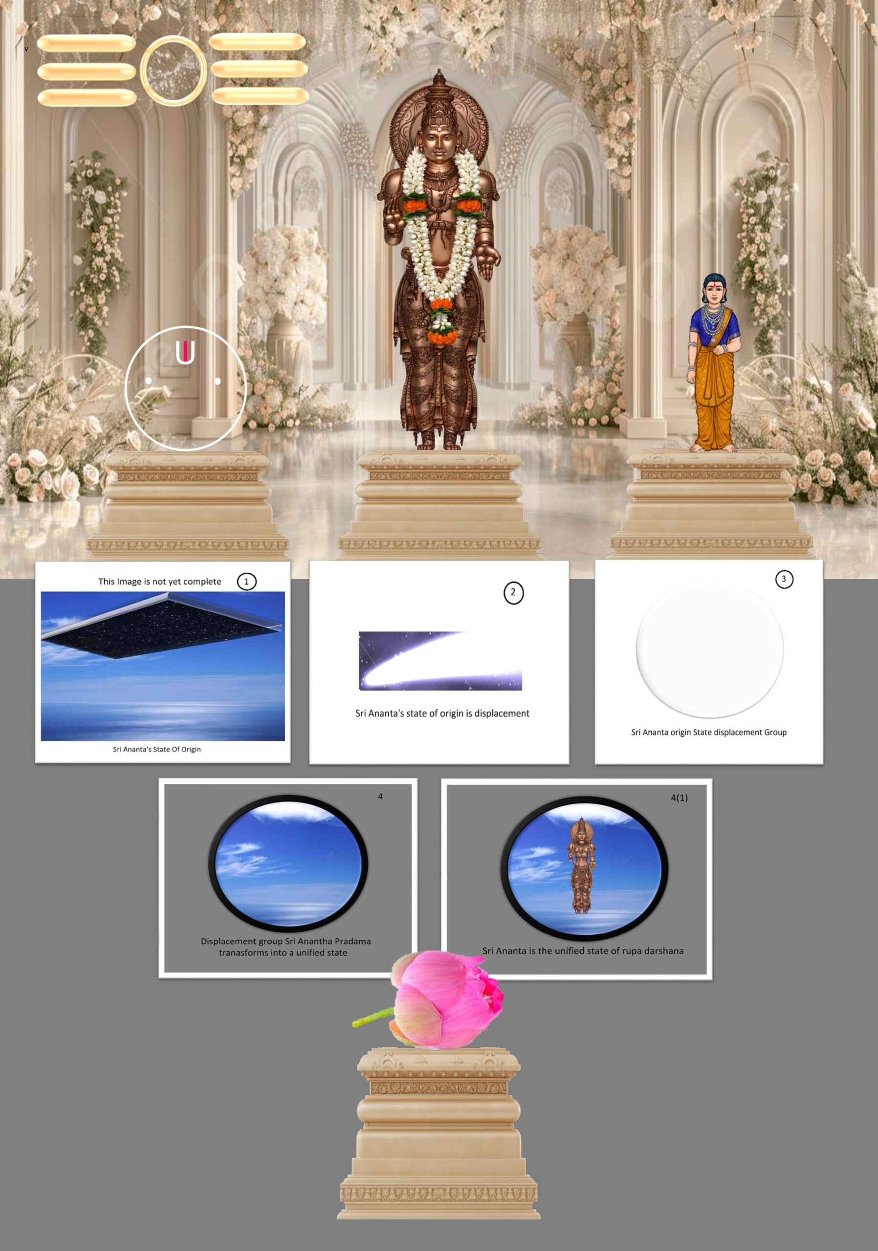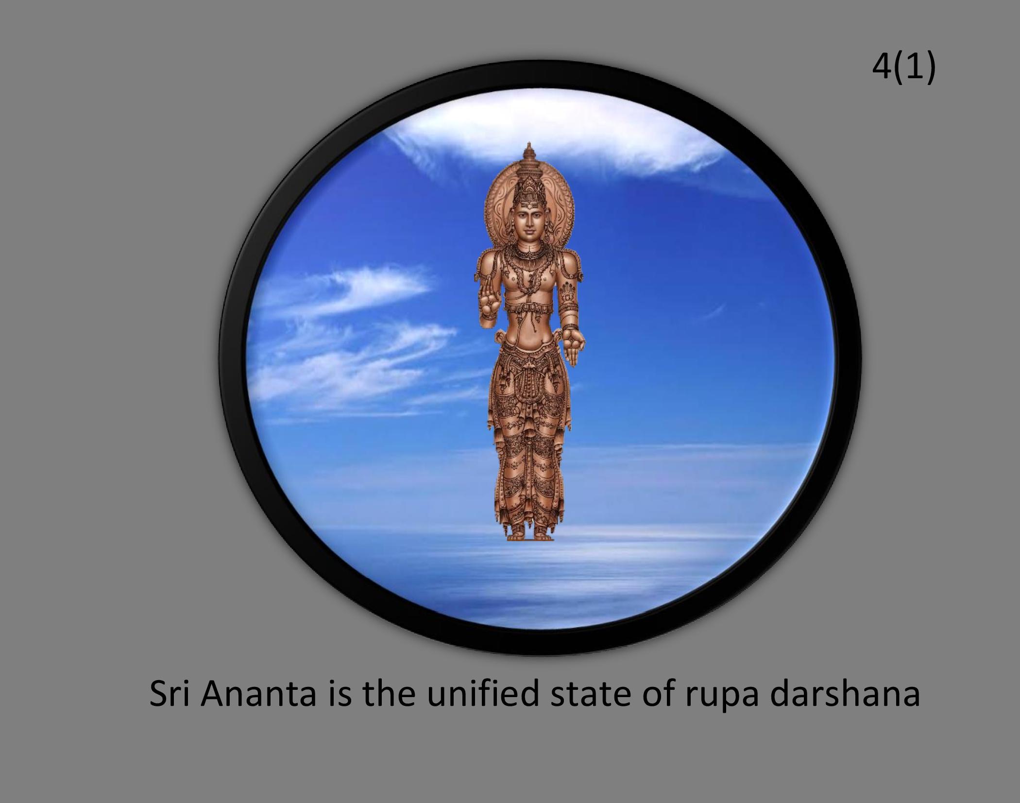 1. Sri Ananta’s State Of Origin 2. Sri Ananta’s state of origin is displacement 3. Sri Ananta origin State displacement Group 4. Displacement group Sri Ananta Pradama transforms into a unified state 4(1). Sri Ananta is the unified state of rupa darshana